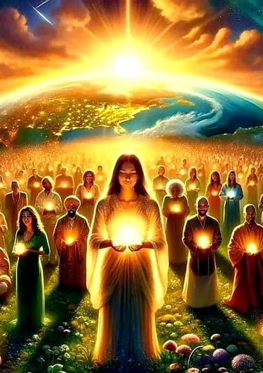 Apenas a Razão Iluminada do homem, o Cristo Campo, governará as ações humanas. Um Império da mente, baseado apenas na frequência interna. Todo sofrimento será erradicado, até mesmo a morte. — Apocalipse 21:3-4
