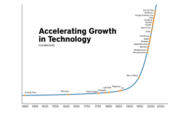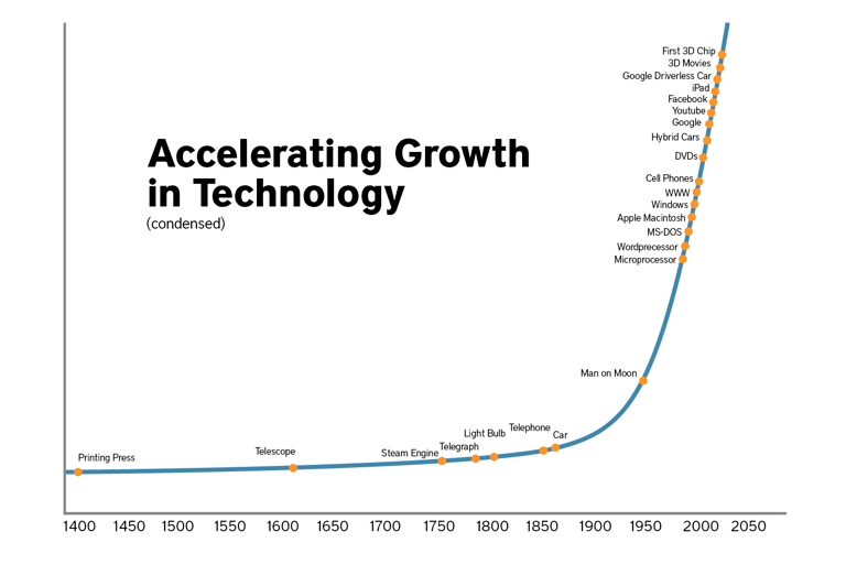 Veja esse gráfico histórico: ele indica um salto abrupto na atividade inventiva humana, a partir de 1870, que não bate com um modelo evolutivo-natural, que pressupõe progressões graduais.